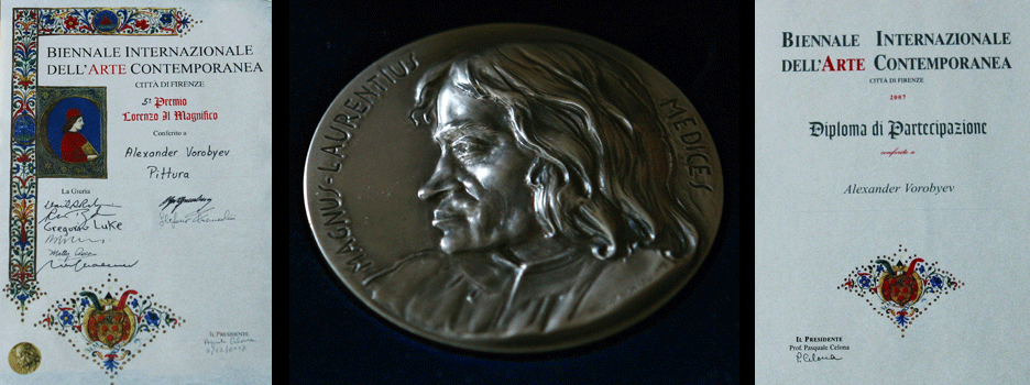 Alexander Vorobyev's work featured at the Florence Biennale, was recognised and awarded a medal for works on Canvas.